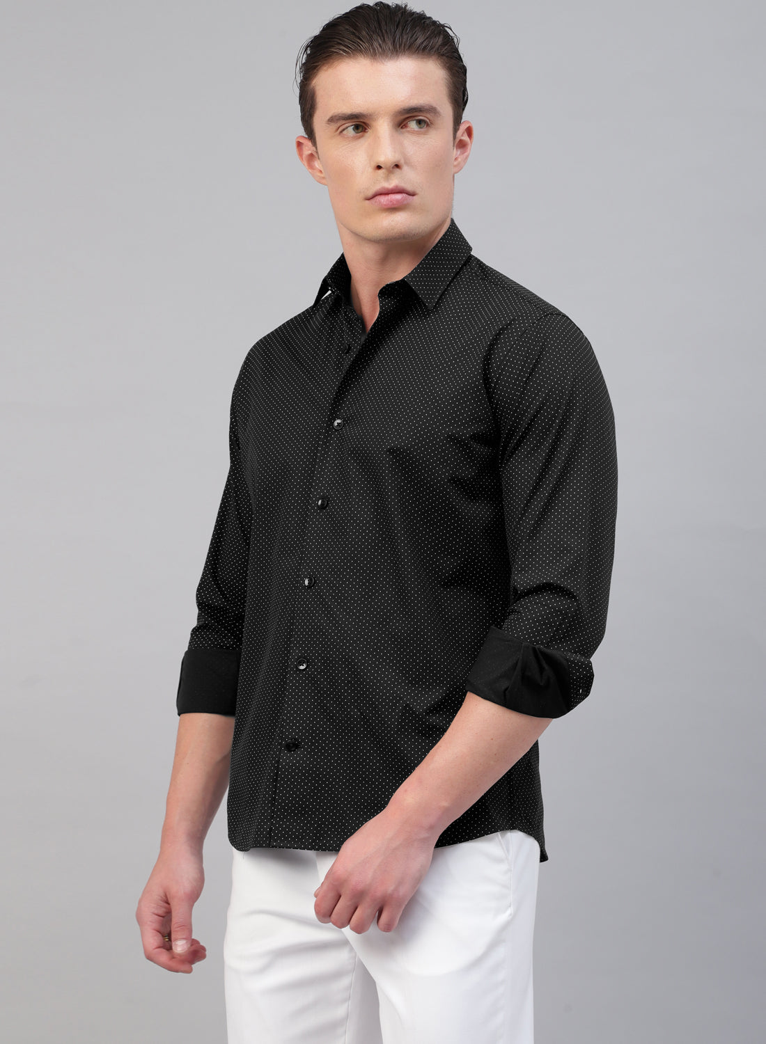 Black Cotton Printed Full Sleeve Shirt