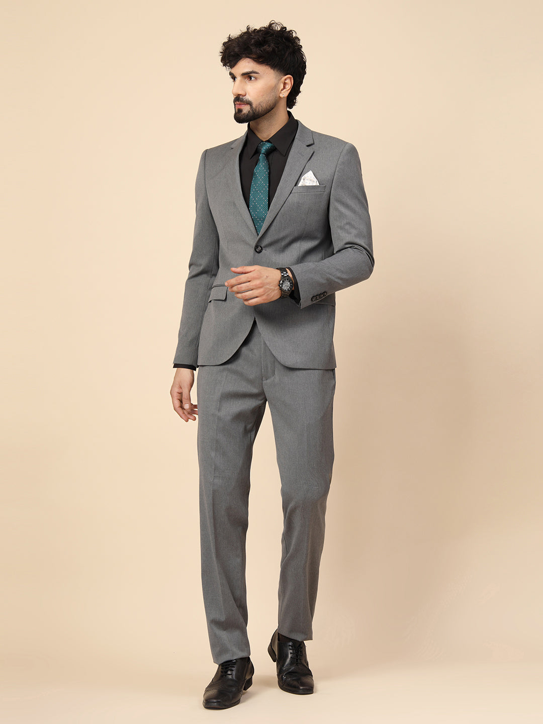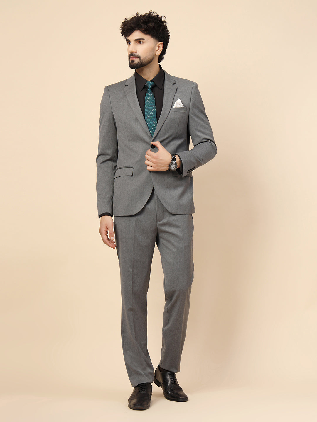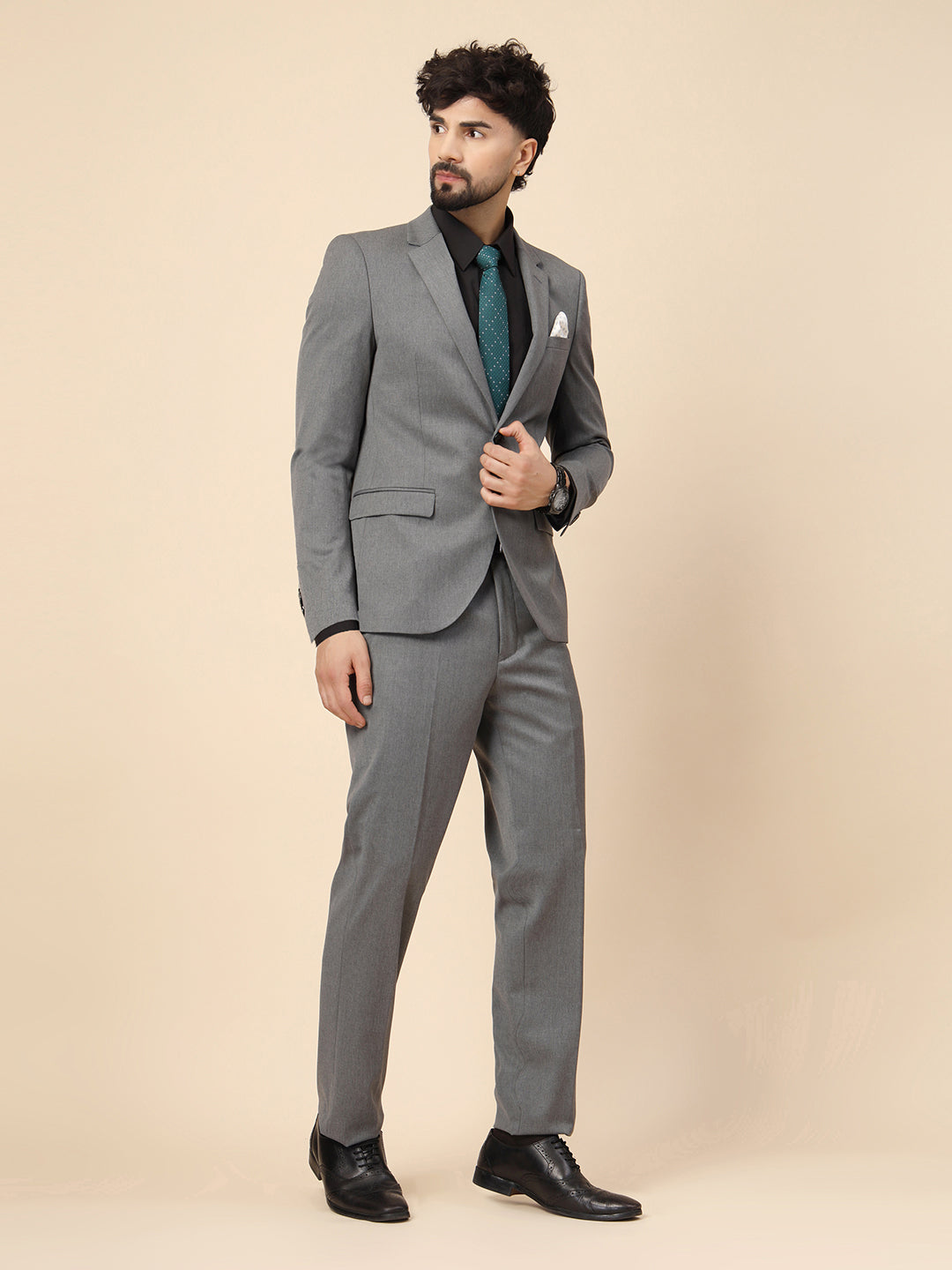 Grey Polywool 2pcs Formal Suit