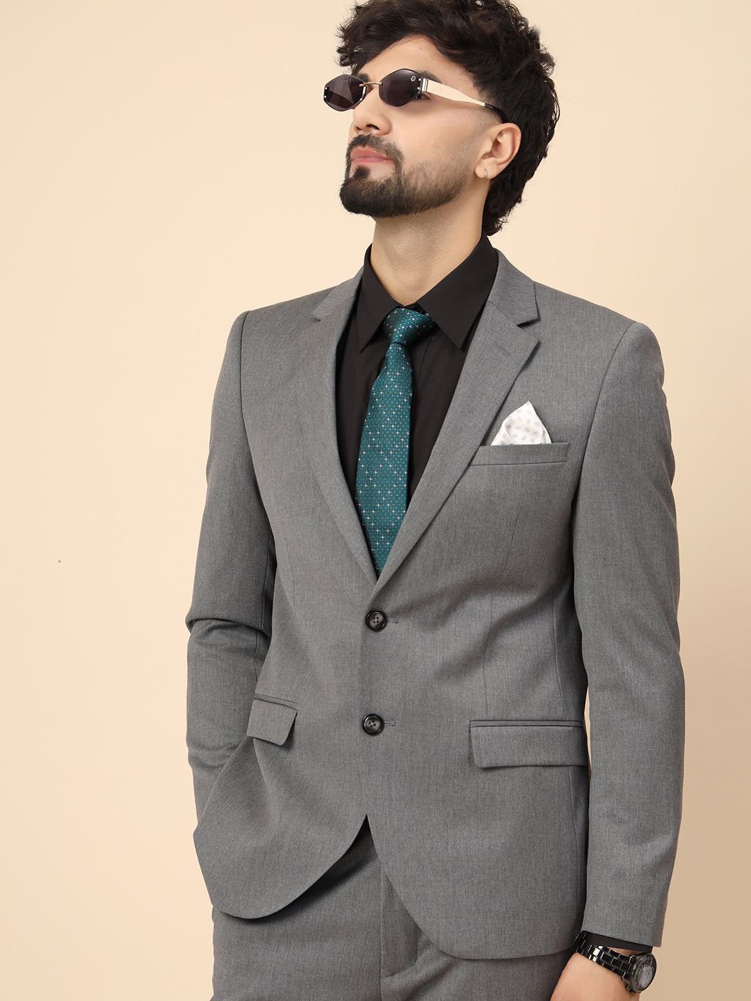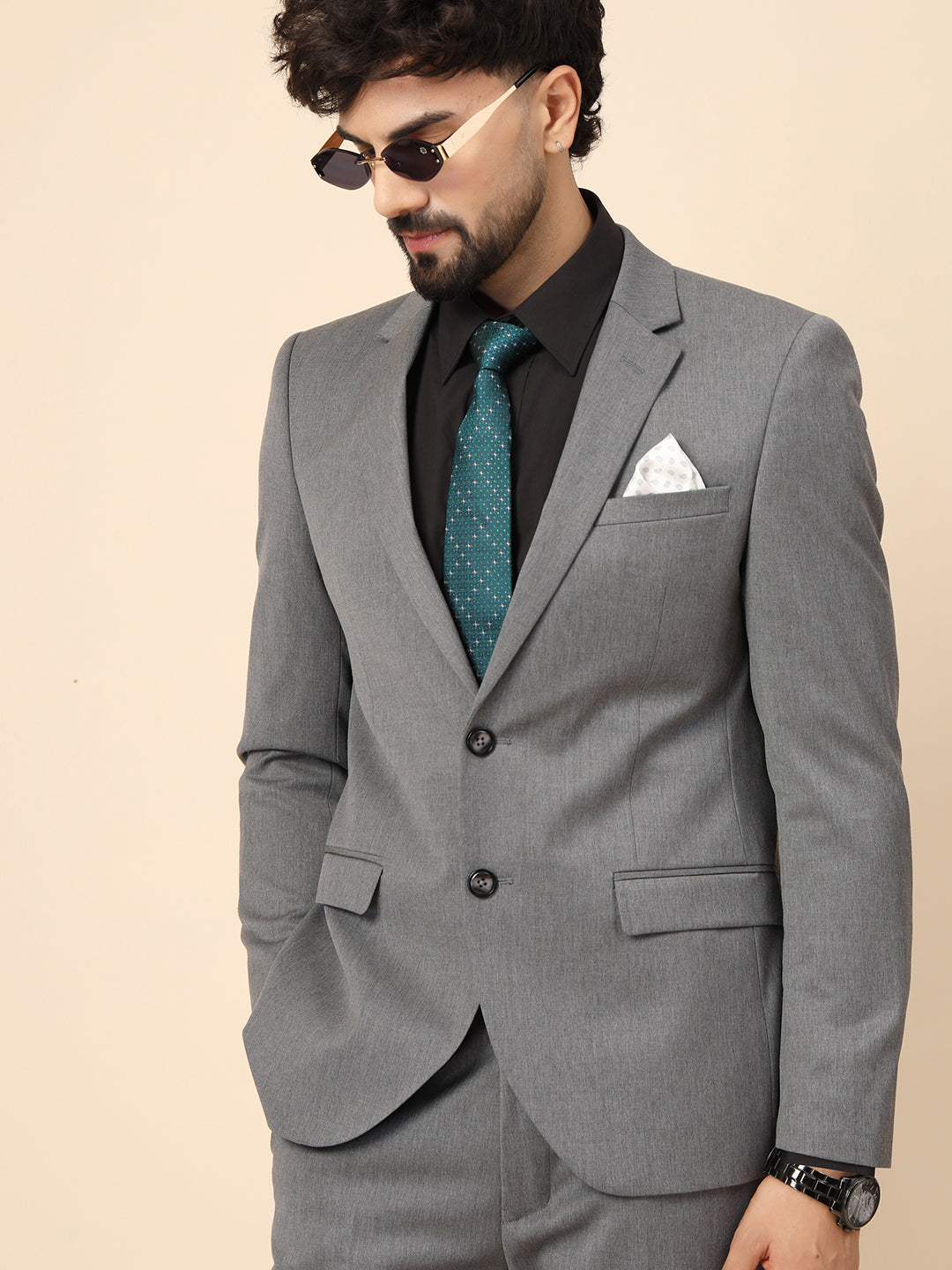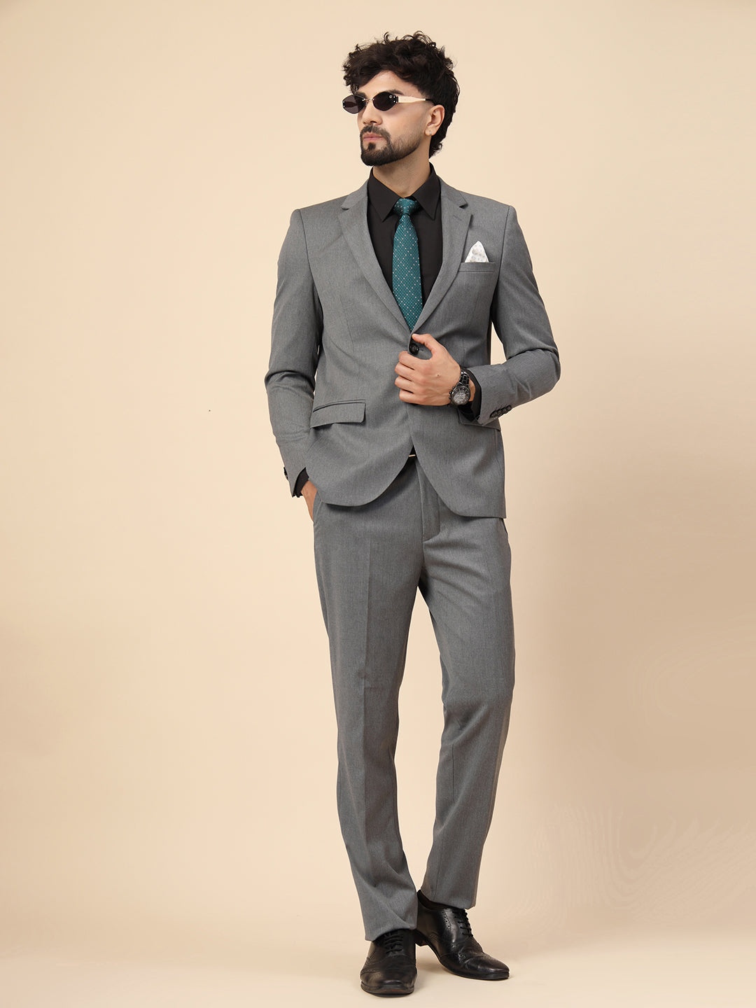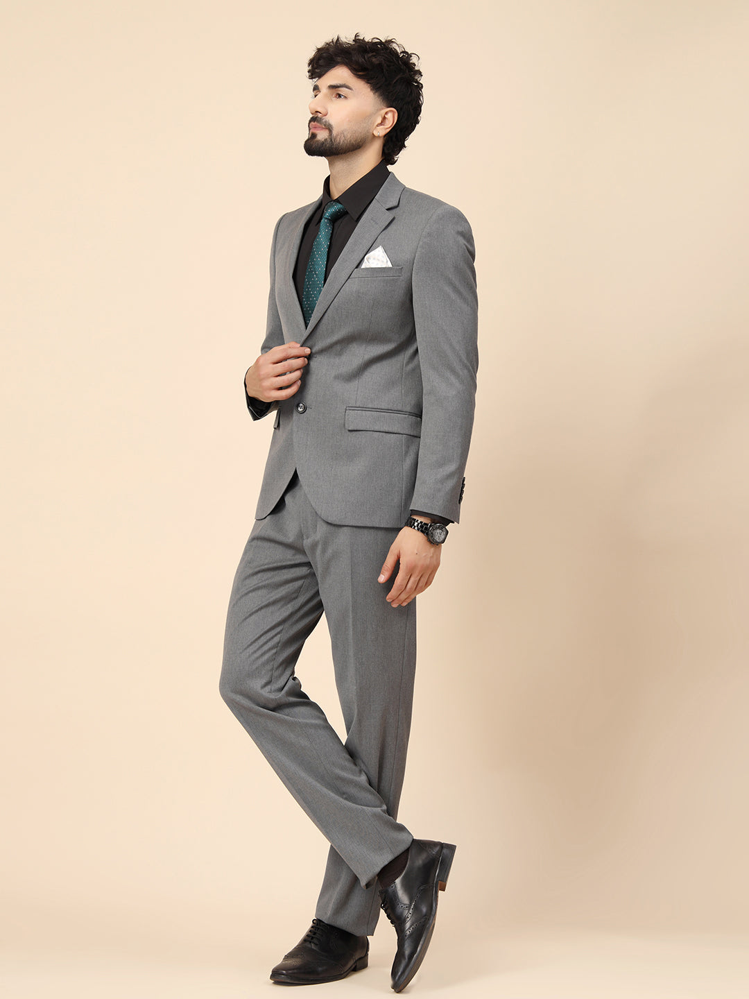 Grey Polywool 2pcs Formal Suit
