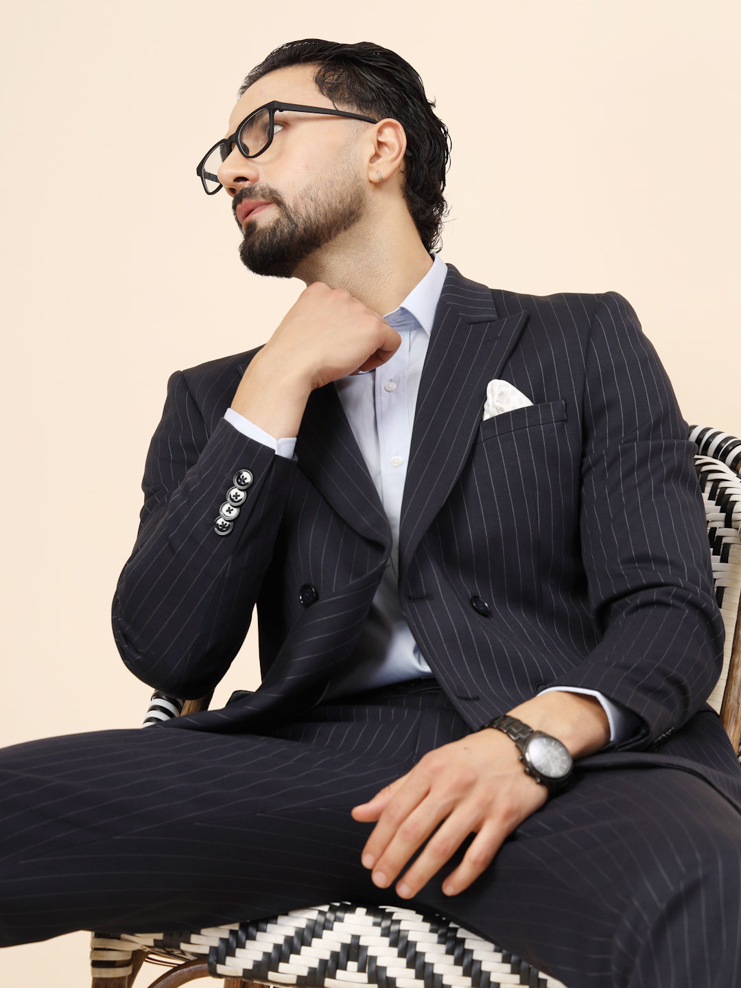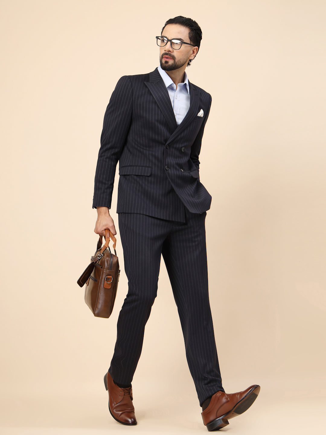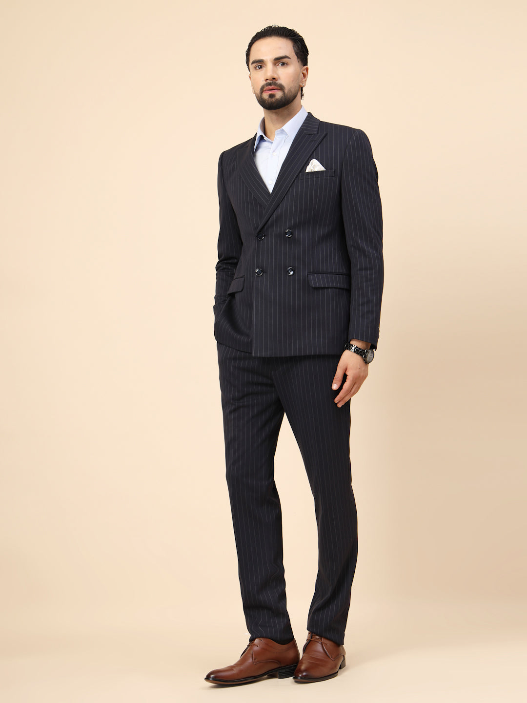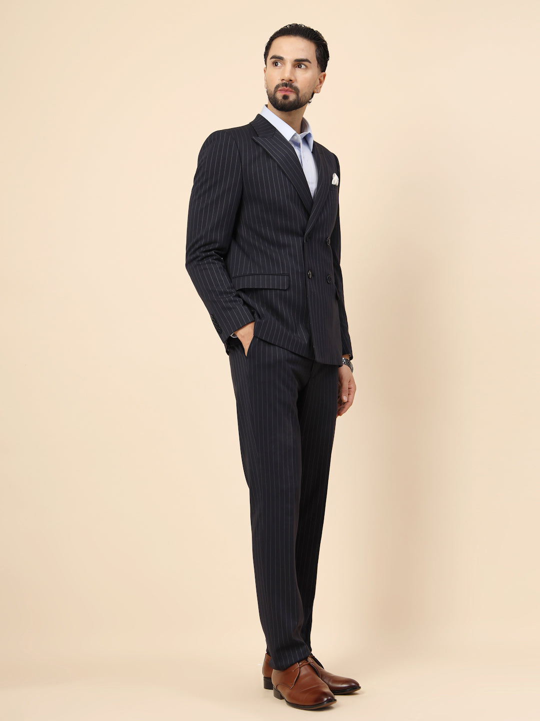 Navy Uncrushable Stripe Double Breasted 2pcs Suit