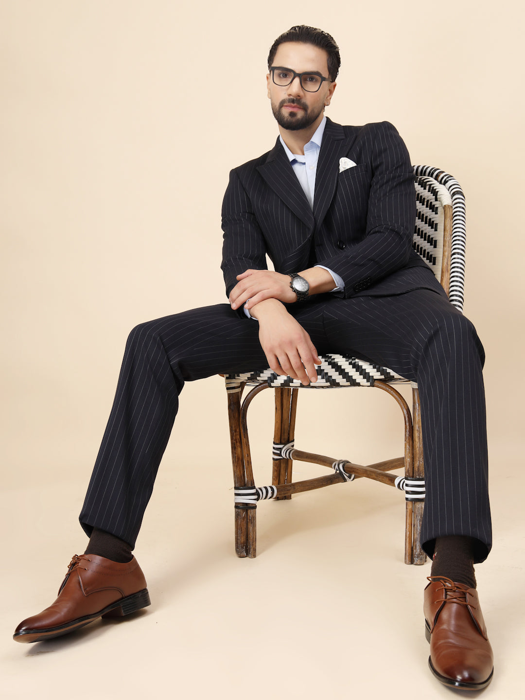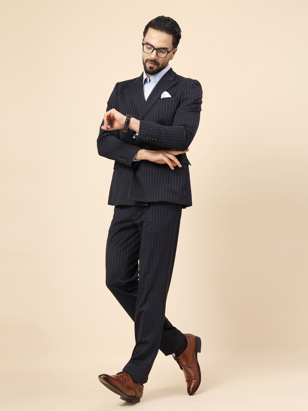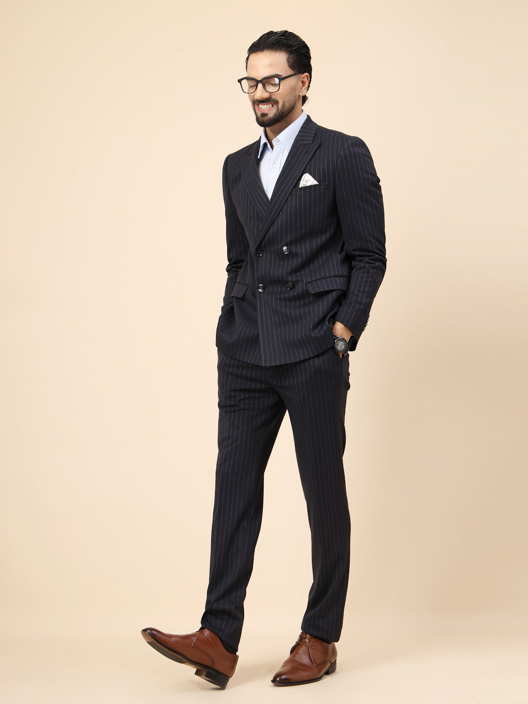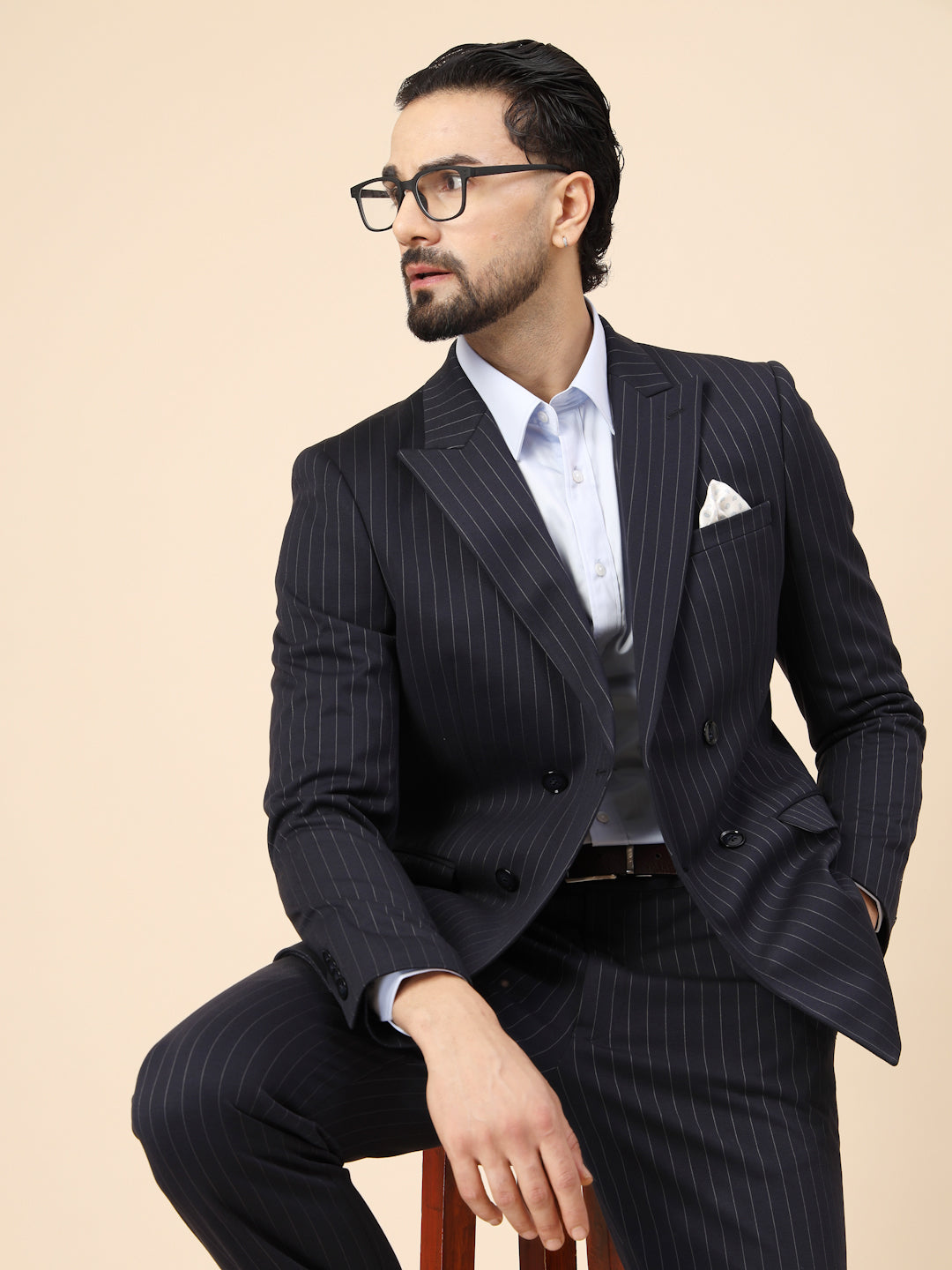 Navy Uncrushable Stripe Double Breasted 2pcs Suit