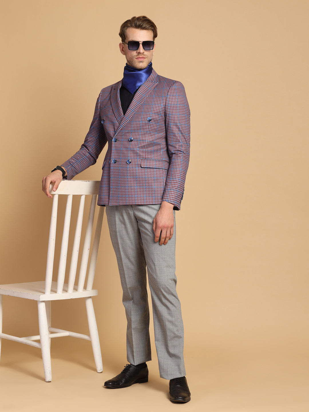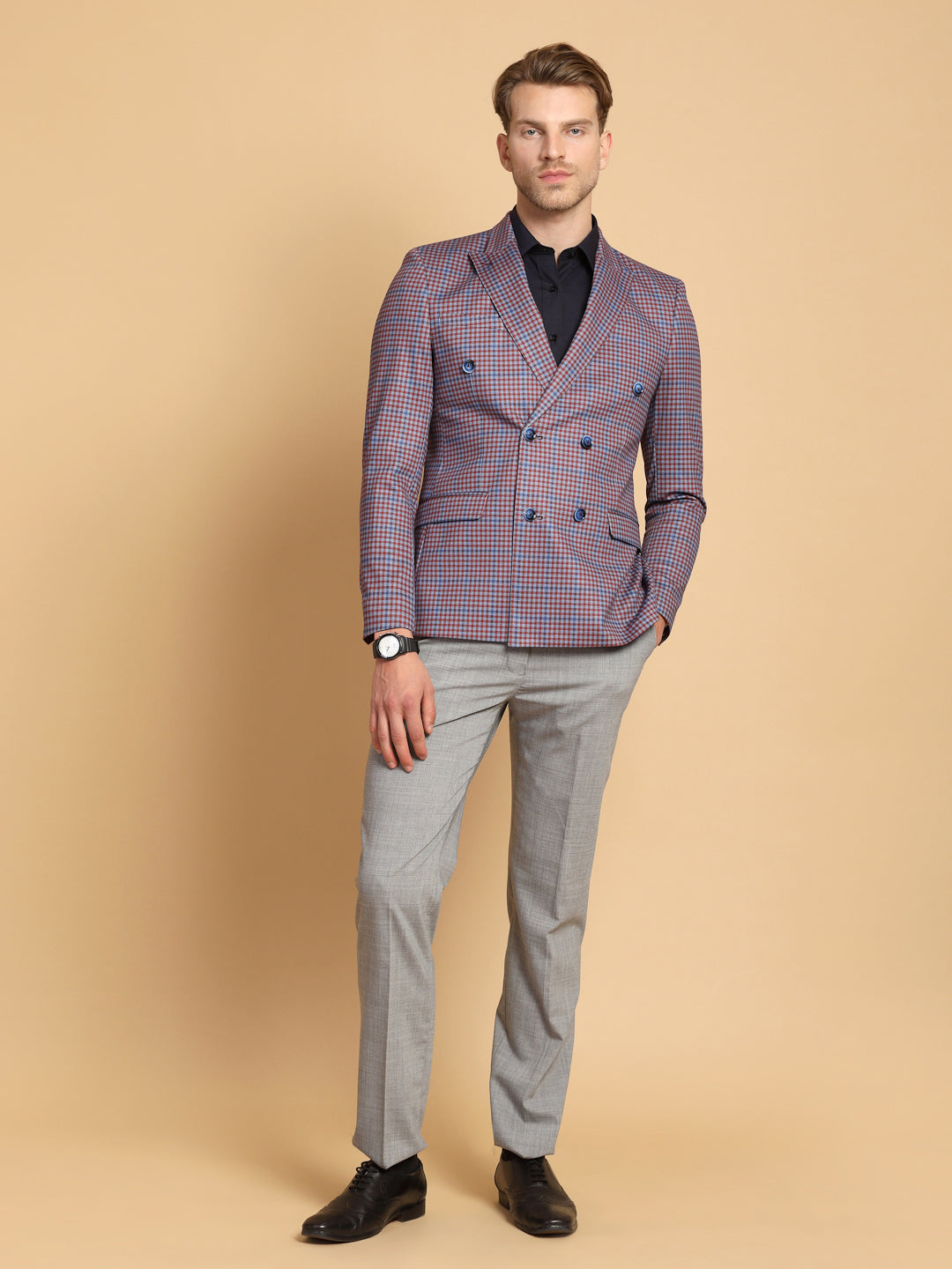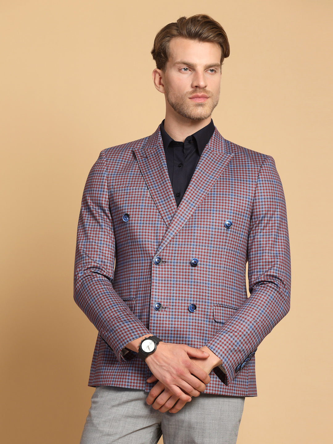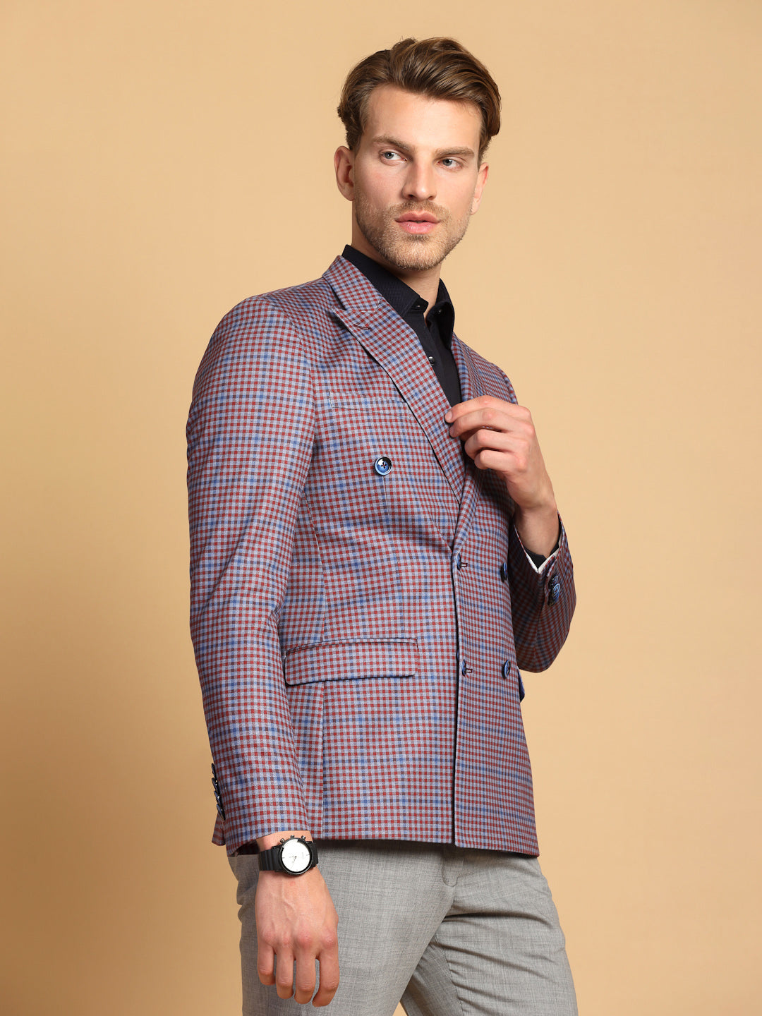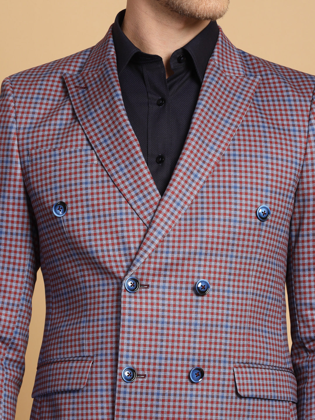 Red & Blue Uncrushable Double Breasted Check Jacket