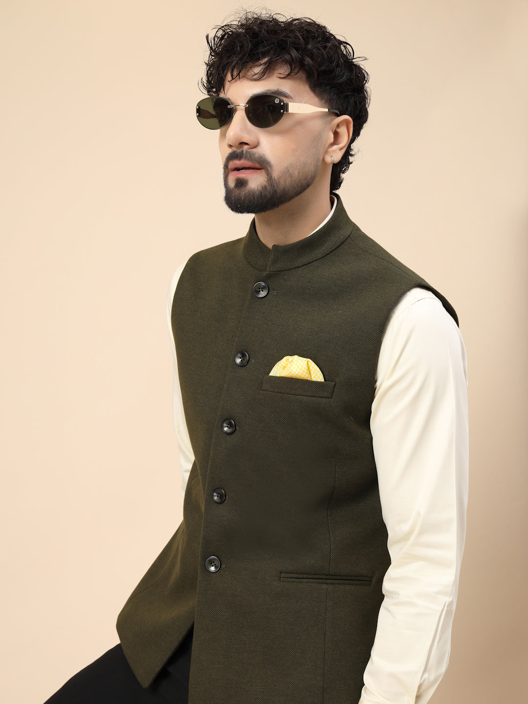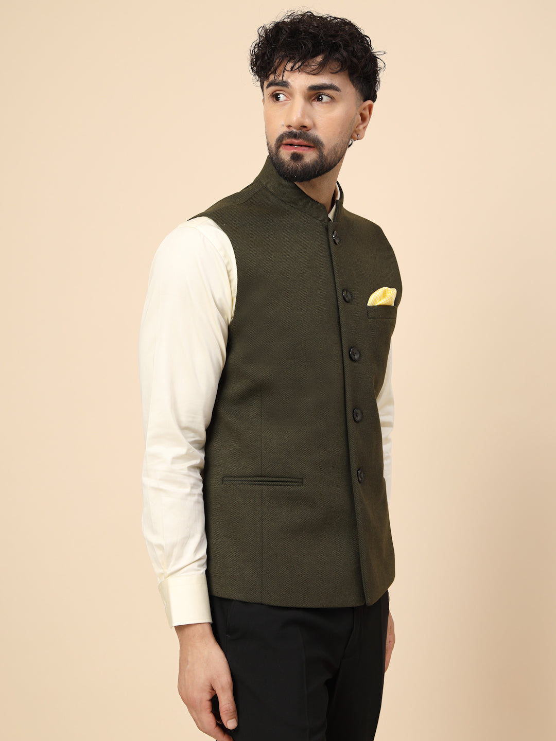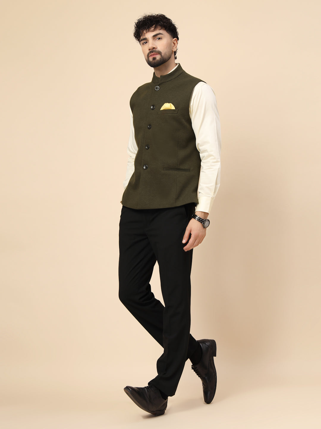 Olive Uncrushable Nehru Jacket
