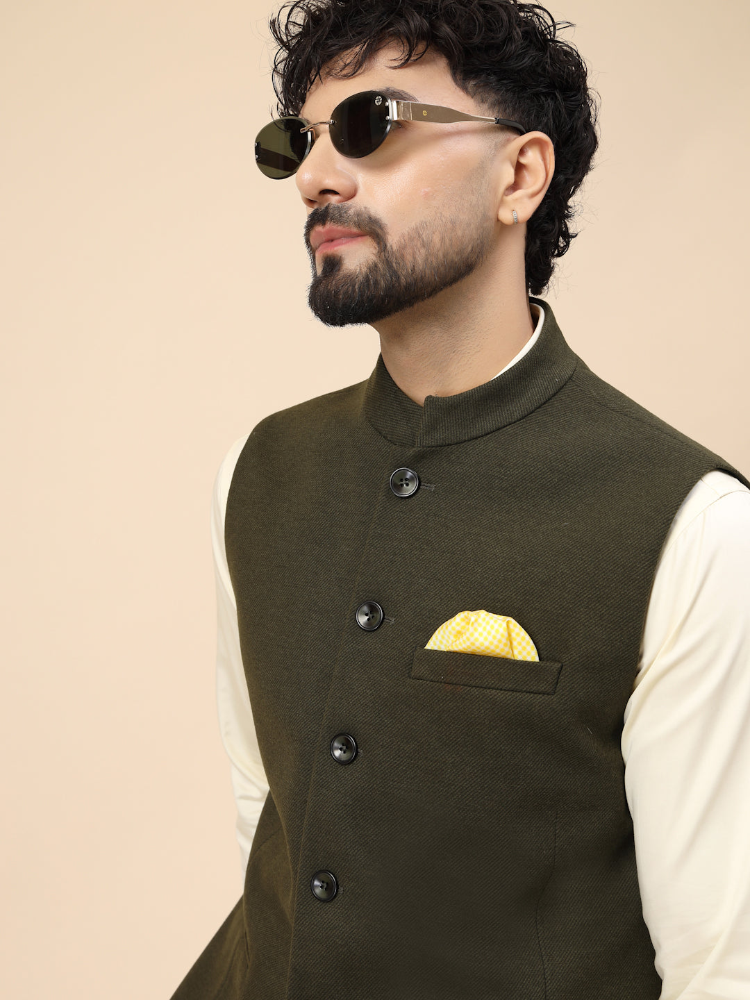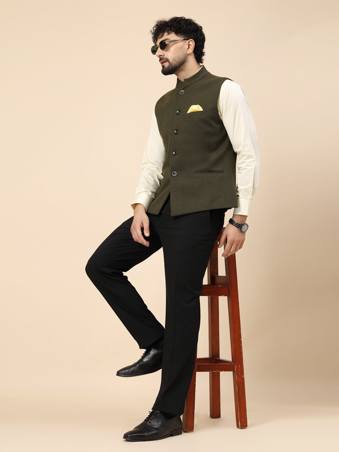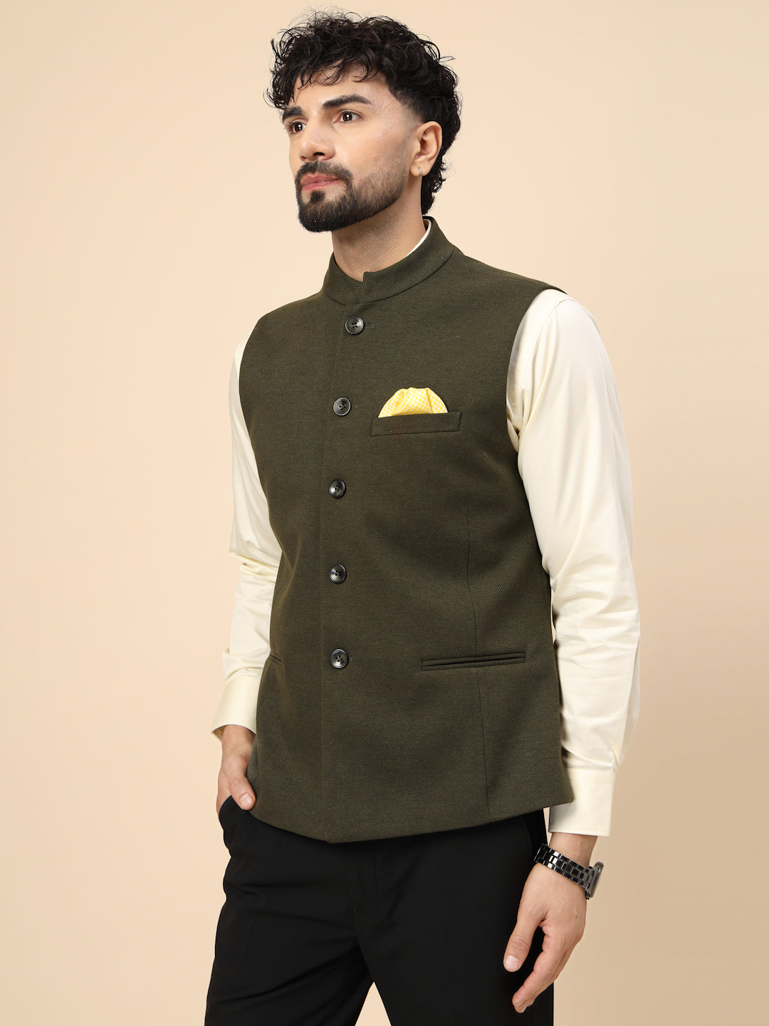 Olive Uncrushable Nehru Jacket