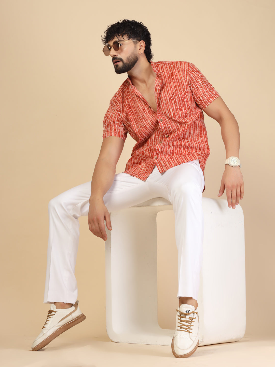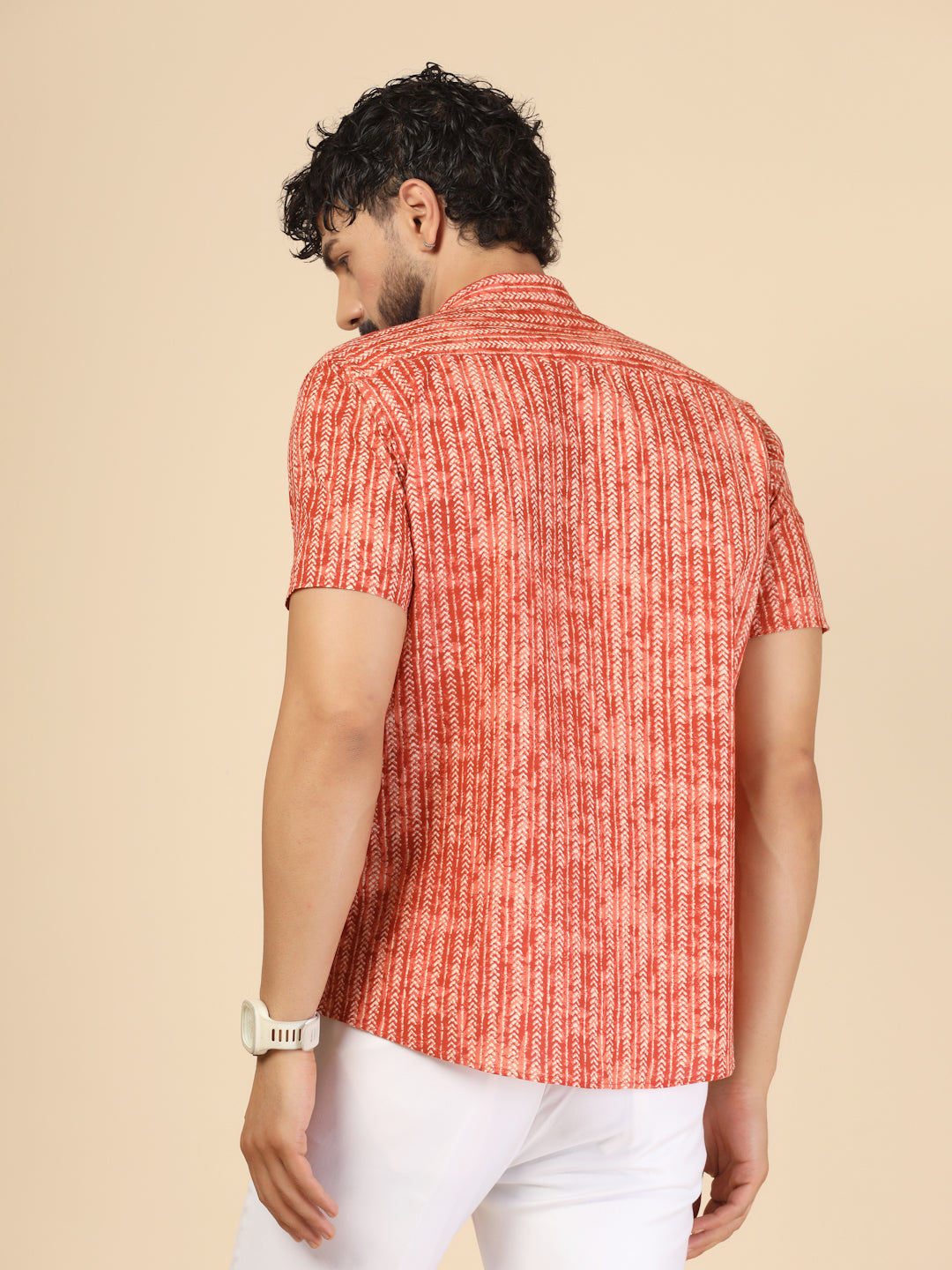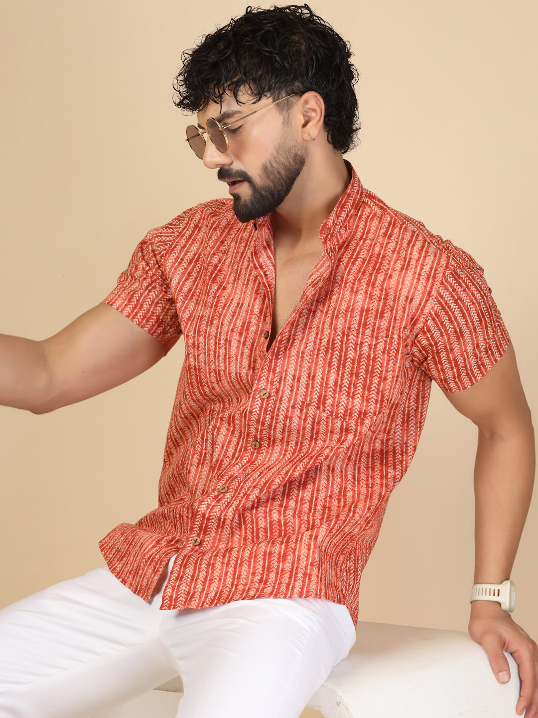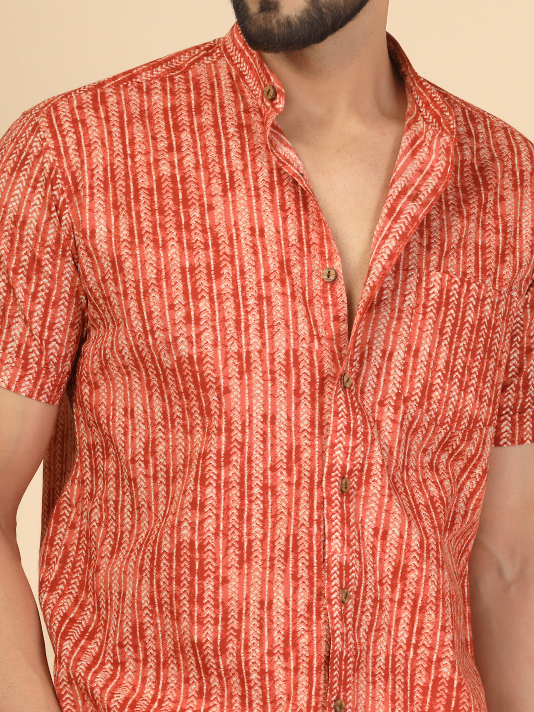 Rust Printed 100% Cotton Half Sleeve Shirt