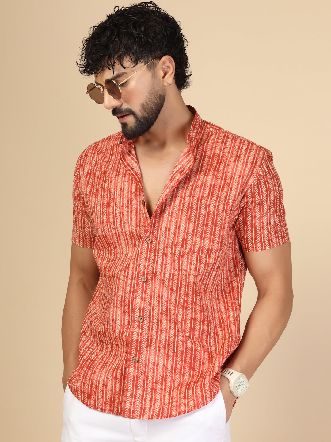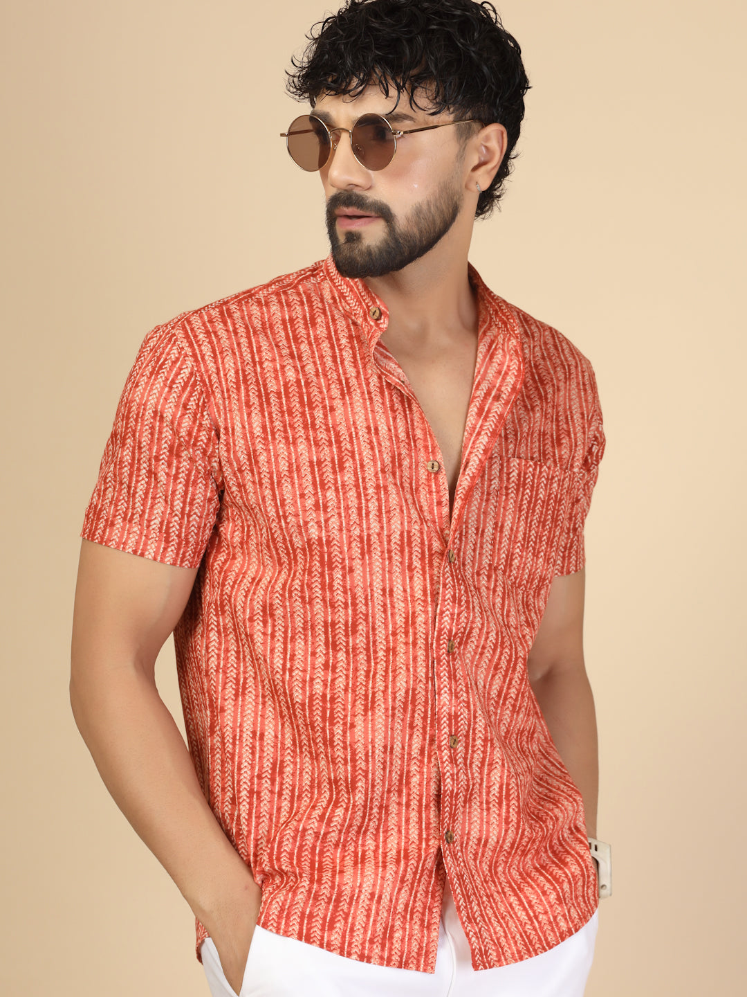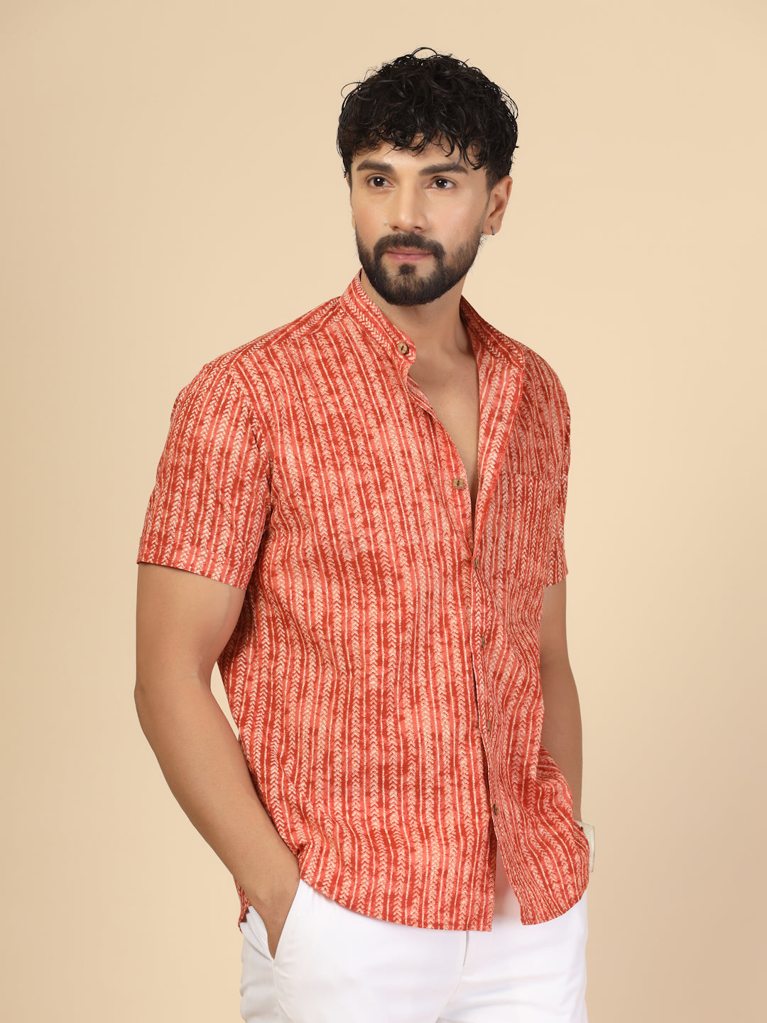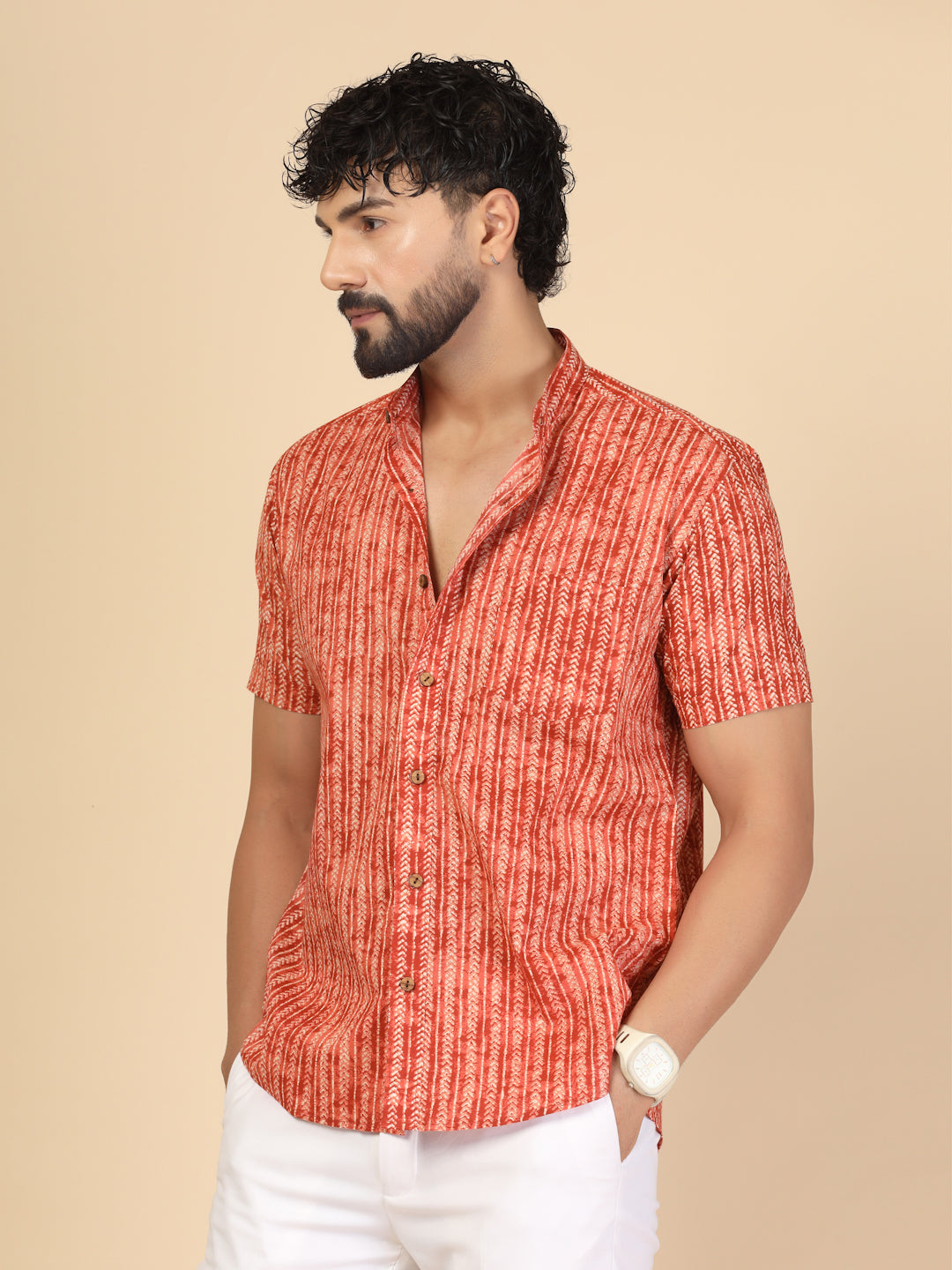 Rust Printed 100% Cotton Half Sleeve Shirt