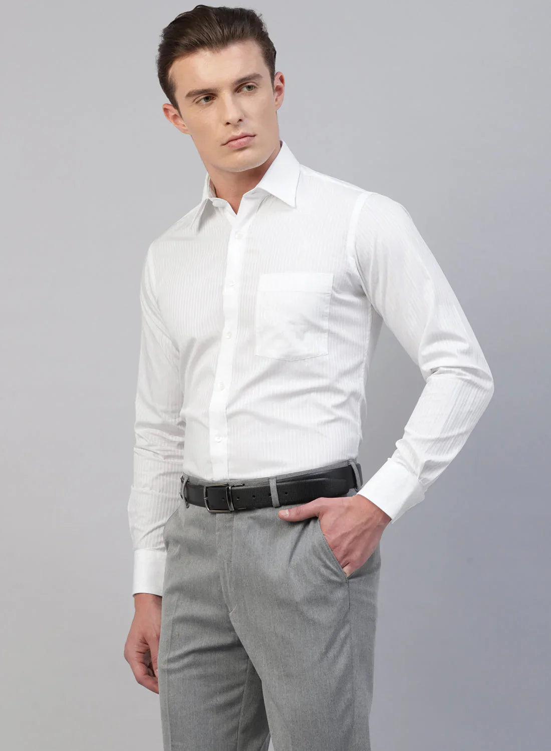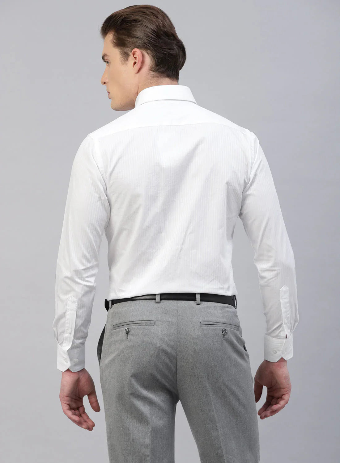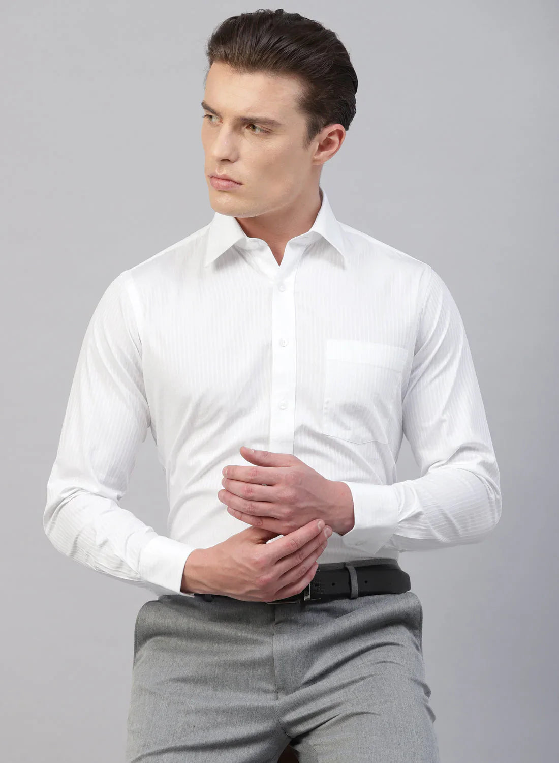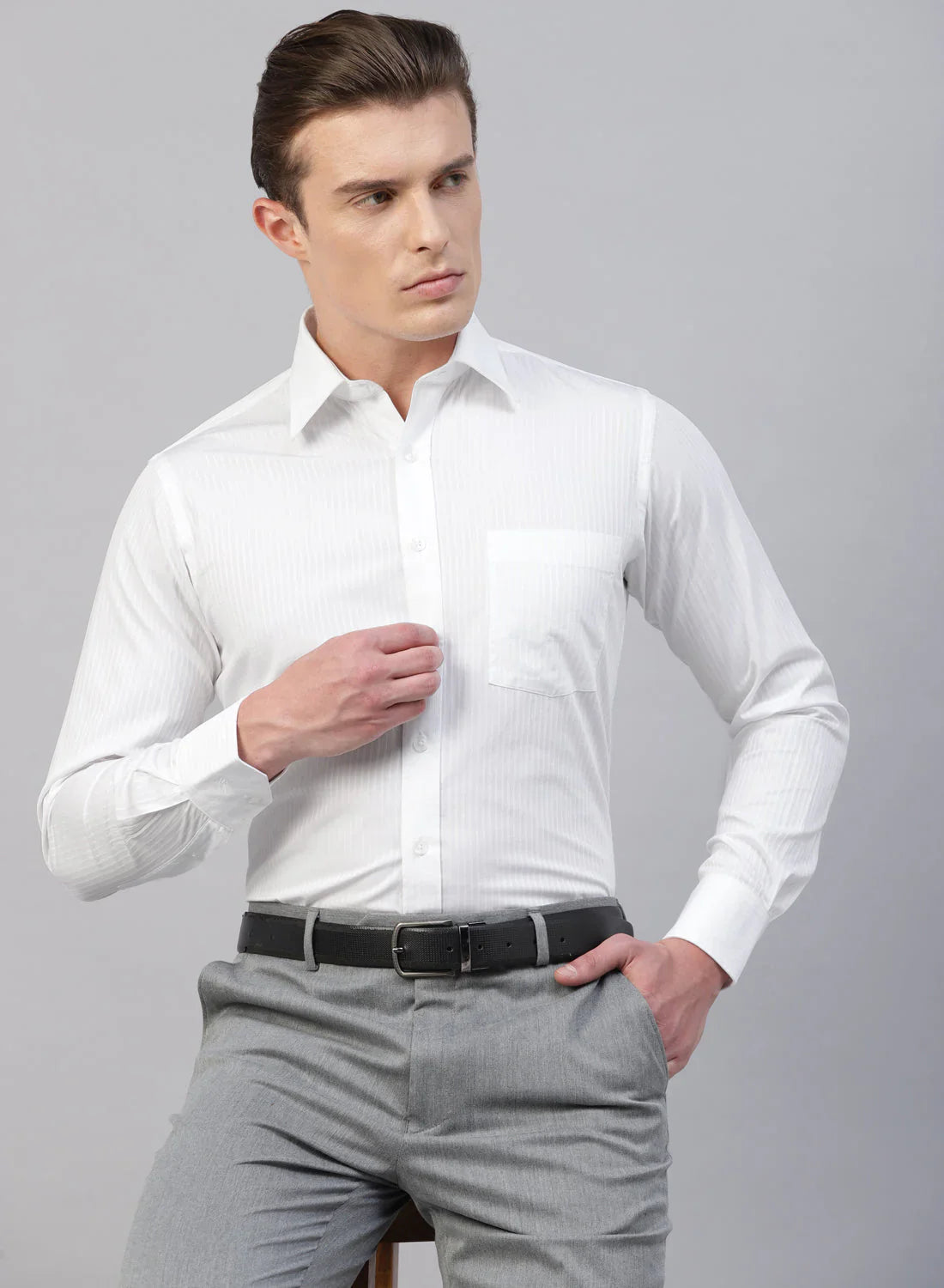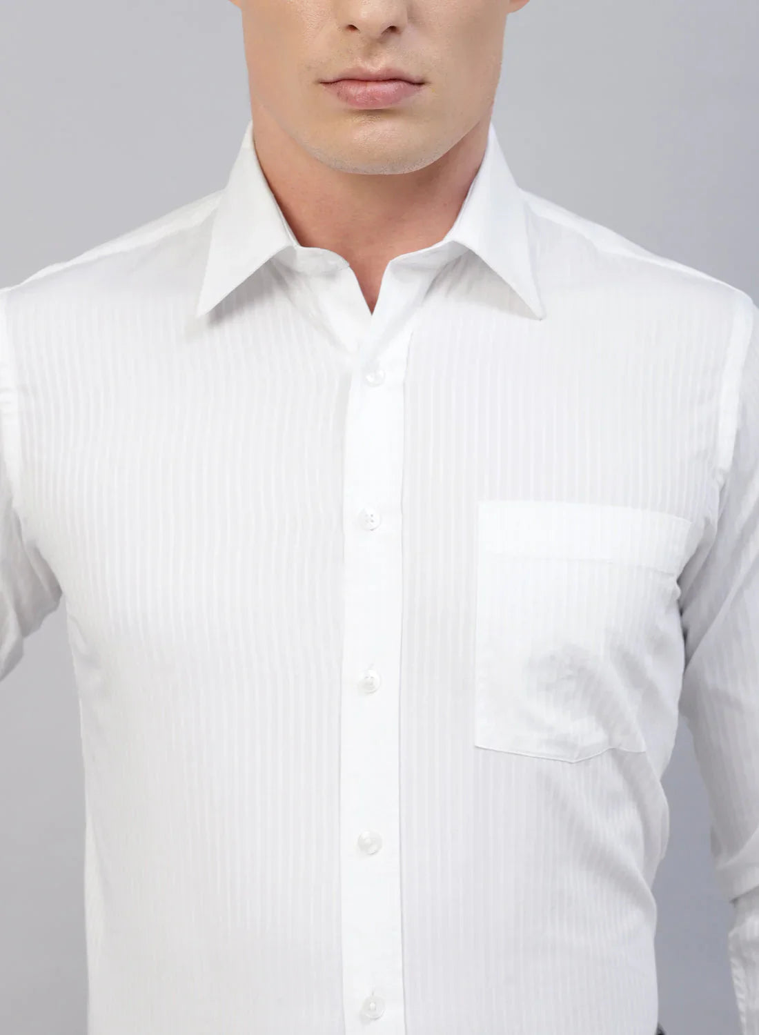 White Cotton Self Stripe Full Sleeve Shirt