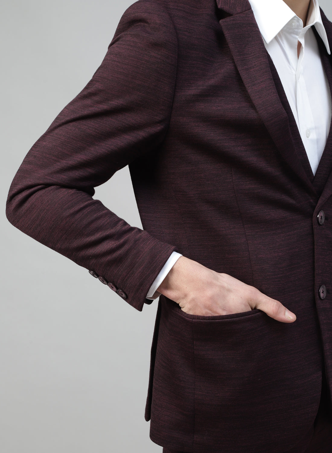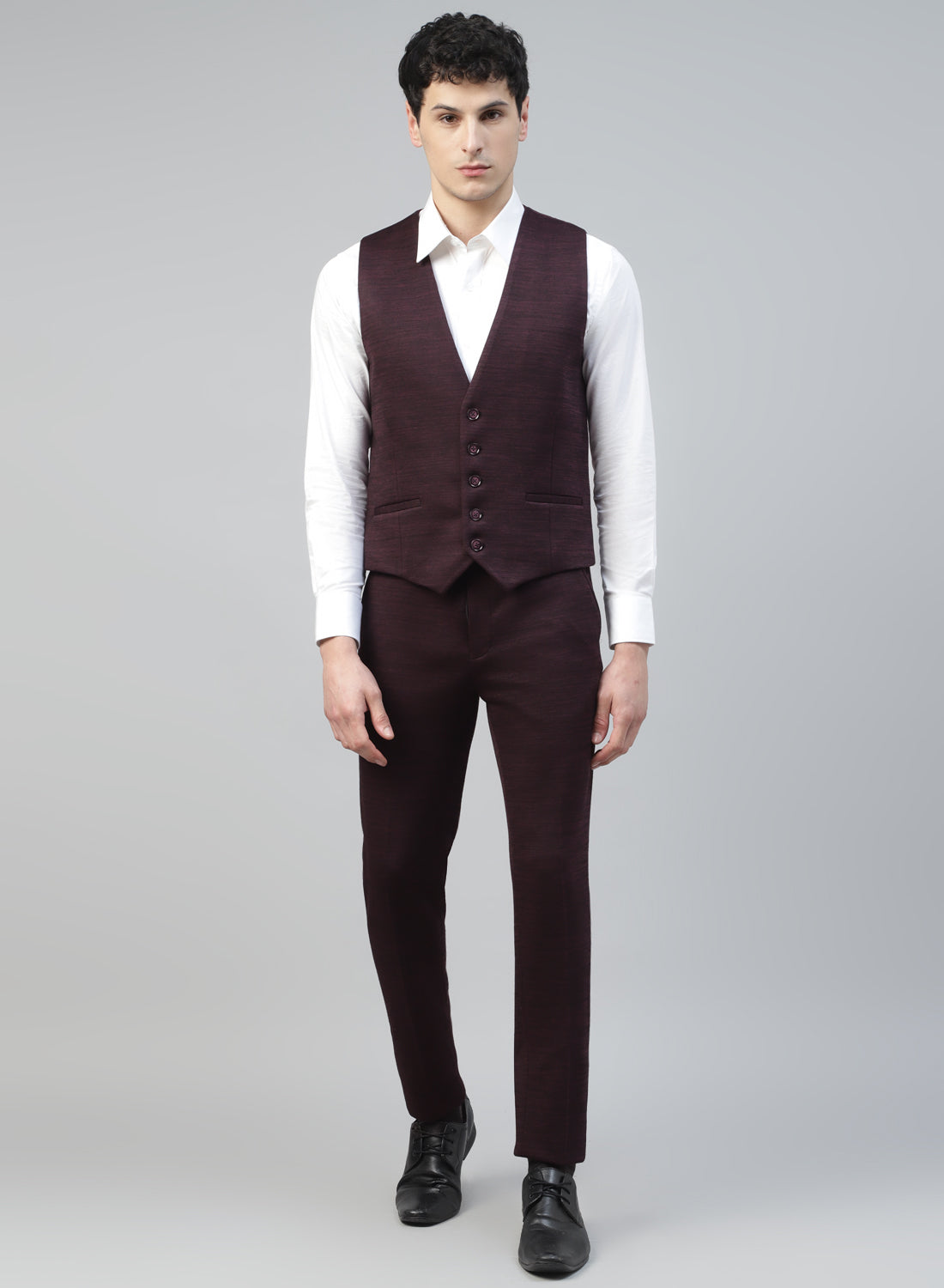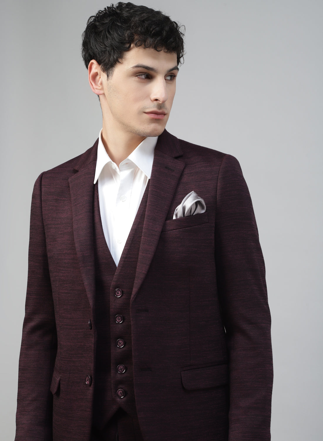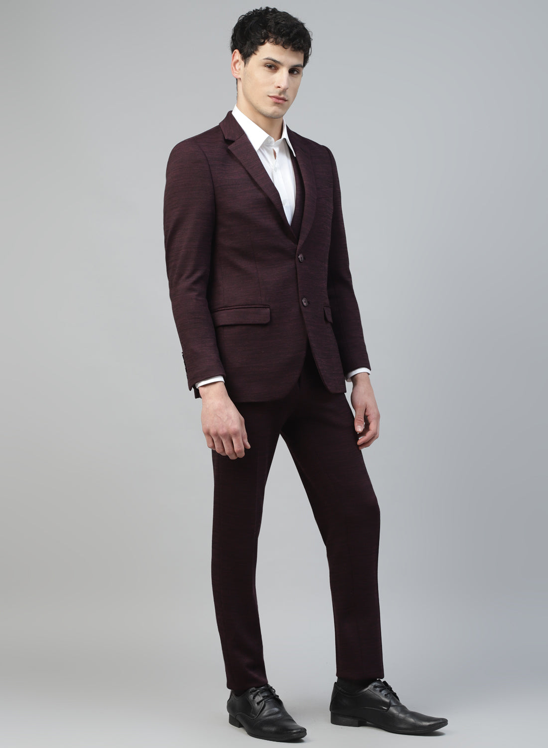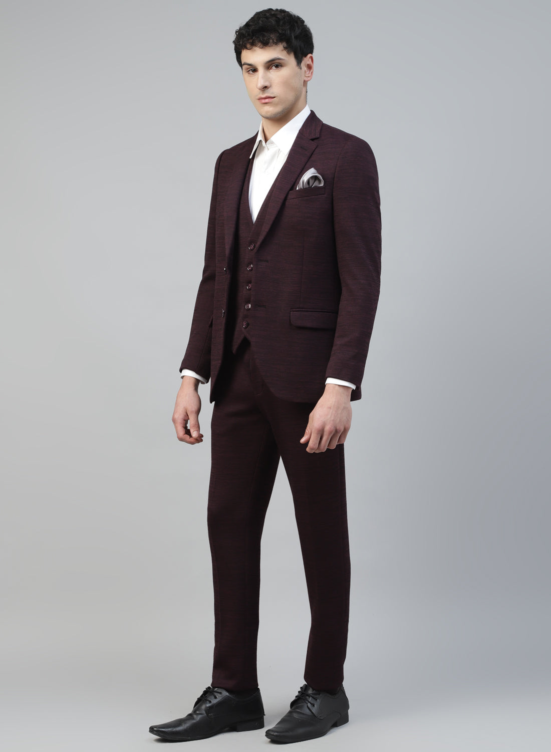 Wine Knit Uncrushable Printed 3Pcs Suit